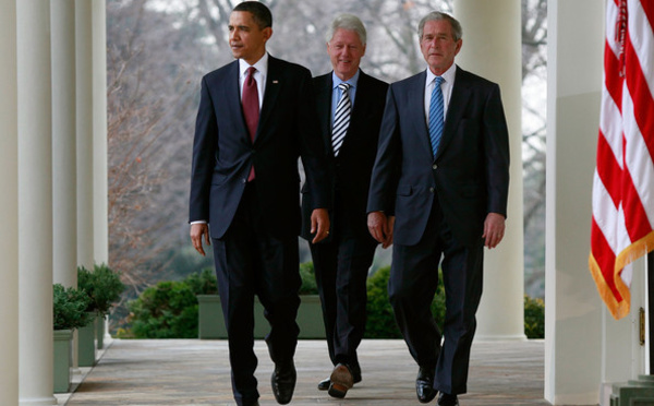 Barack Obama et Georges Bush et Bill Clinton en escale à l’aéroport de Dakar aujourd’hui - 09/12/2013