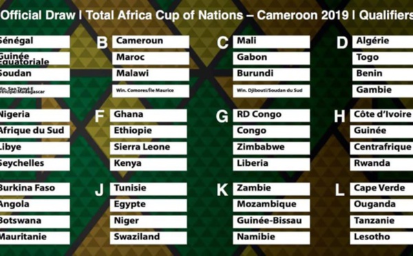 Le Sénégal connaît déjà ses adversaires des éliminatoires de la CAN 2019. Les Lions de la Téranga sont dans la poule A en compagnie de la Guinée Équatoriale, du Soudan et du vainqueur du match...