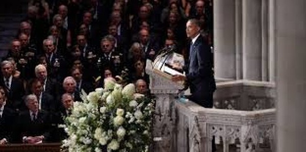 Ils étaient tous les deux opposés lors de l'élection présidentielle de 2008. Barack Obama a livré un hommage poignant à son ancien adversaire John McCain, "Nous n'avons jamais douté que nous...