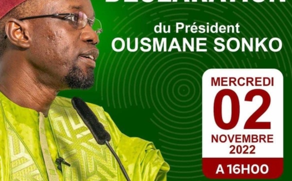 Ousmane Sonko annonce une importante déclaration à 16 heures - 02/11/2022